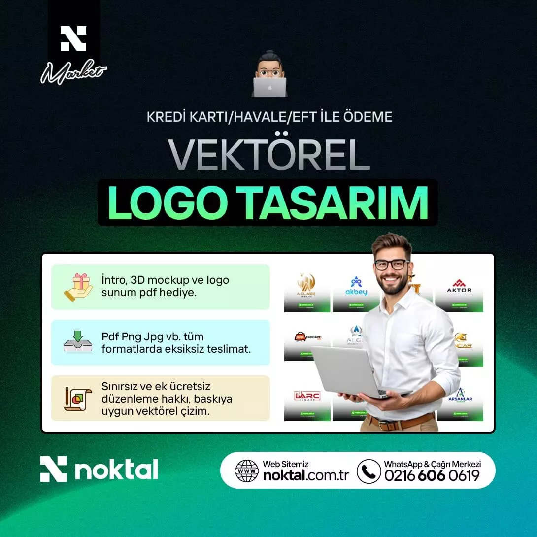 ⚠️ Noktal olarak sadece vektörel logo tasarım hizmeti vermiyoruz. Web tasarım, grafik tasarım, sosyal medya yönetim/tasarım/reklam, kurumsal kimlik tasarımı, e-katalog tasarımı, e-ticaret sitesi kurulumu ve fazlasıyla dijital pazarlama alanında çözüm üretiyoruz. Hizmetimizi buraya tıklayarak N-Market üzerinden inceleyebilirsiniz.